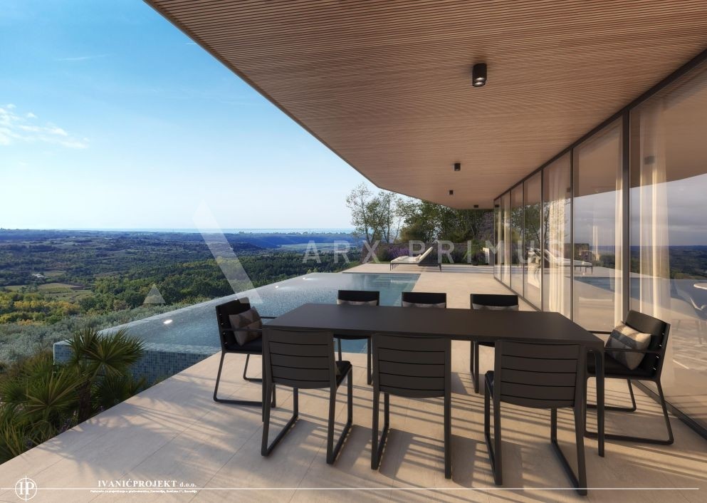 Moderne Villa von hoher Qualität und Design im istrischen indigenen Stil mit wunderschönem offenen Meerblick.