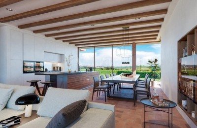 Die Villa wurde nach höchsten Standards entworfen und kombiniert moderne Architektur mit großen Öffnungen und hochwertigen Materialien und traditionellem istrischem Stil mit Trockenmauern und Holzbalken.