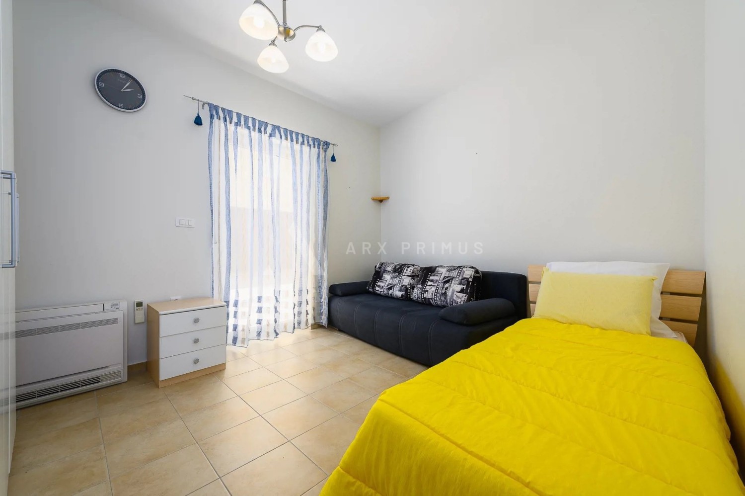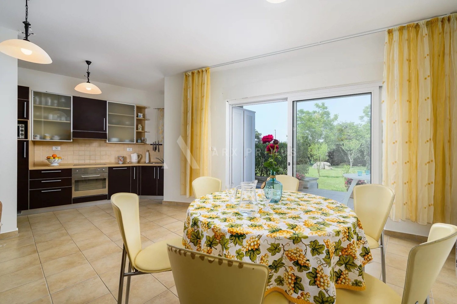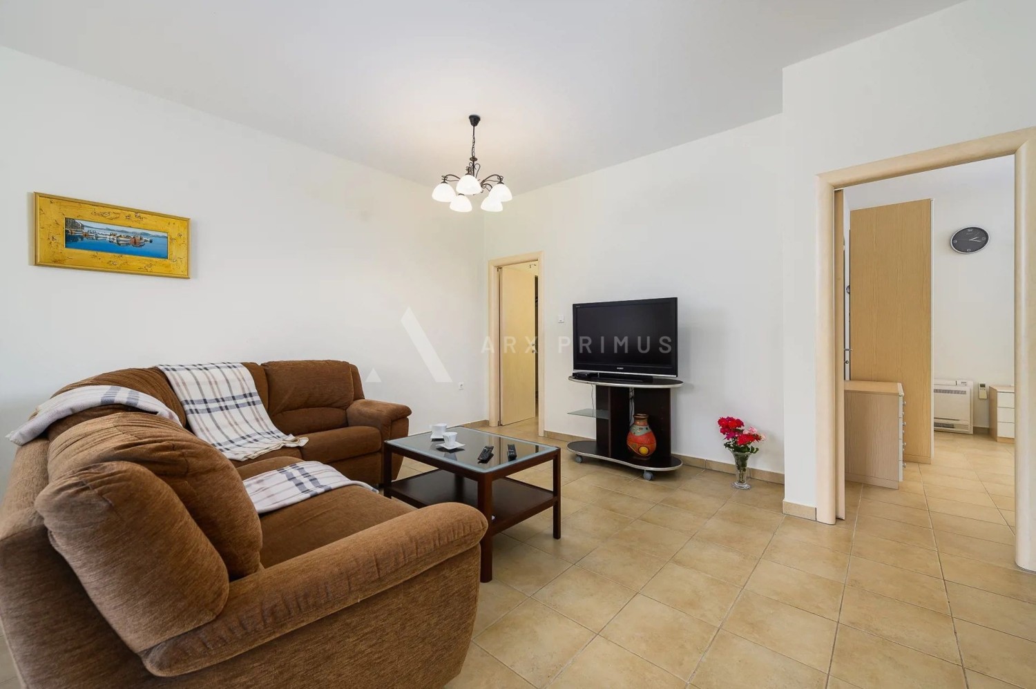 The apartment is located on the ground floor and has 2 bedrooms, a bathroom, a living room and a kitchen, as well as a large terrace that leads to a beautifully landscaped garden.