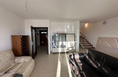 Stan je dvoetažni, u prizemlju se nalazi dnevni boravak s kuhinjom i kupaonicom te izlaz na terasu i dvorište s bazenom. Na katu se nalaze 2 spavaće sobe, kupaonica i WC te terasa s koje se pruža pogled na more.