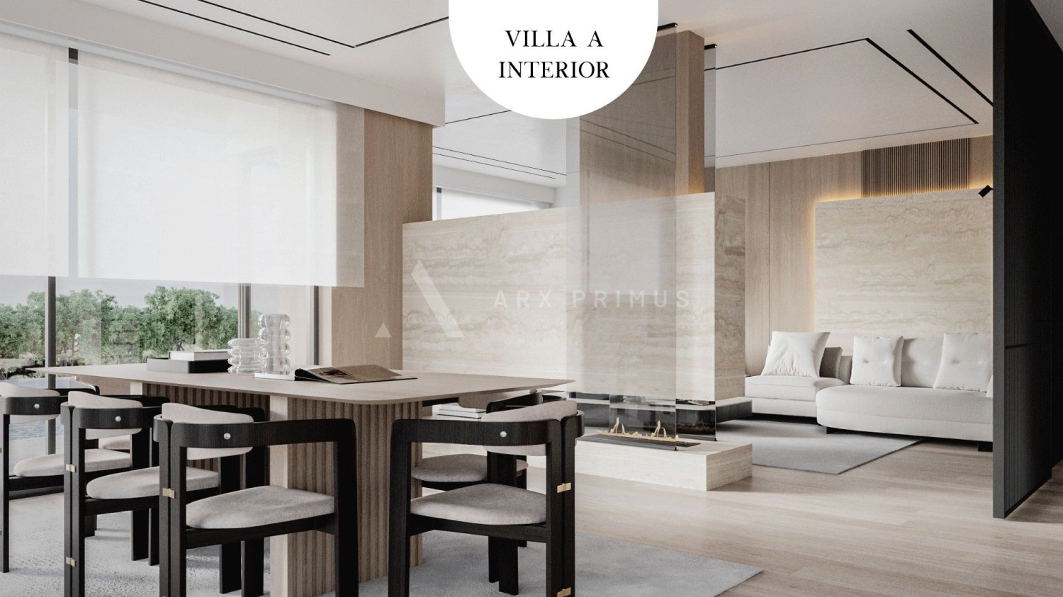 Vila se prostire na prizemlje u kojem se nalaze open space dnevcni boravak s blagavaonicom i kuhinjom, spavaća soba, kupaonica, ostava te izlaz na terasu i dvorište s bazenom. Na prvom katu se nalaze 3 spavaće sobe svaka sa svojom kupaonicom te lijepa velika terasa.
