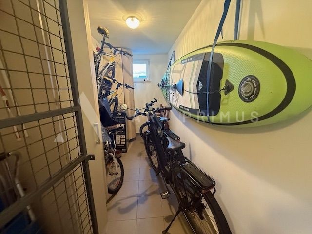 L'appartamento dispone inoltre di un giardino di 20,5 m², un ripostiglio al piano seminterrato di 5,6 m² e un posto auto di fronte all'edificio.