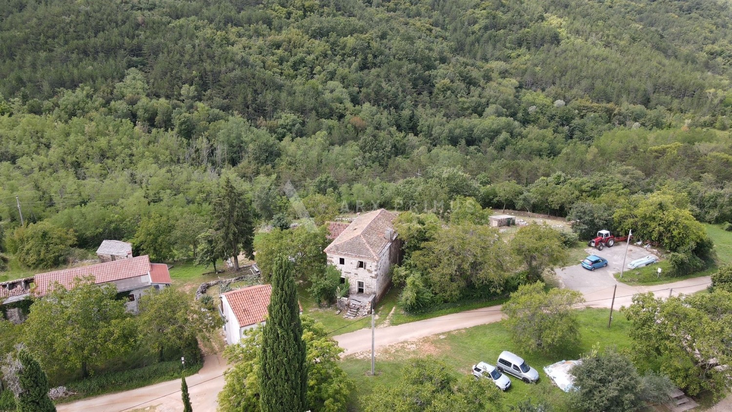 Zemljišče ima skupno površino 3578 m2, na katerem se nahaja popolnoma obnovljena hiša površine 80 m2 in stara kamnita hiša 207 m2.